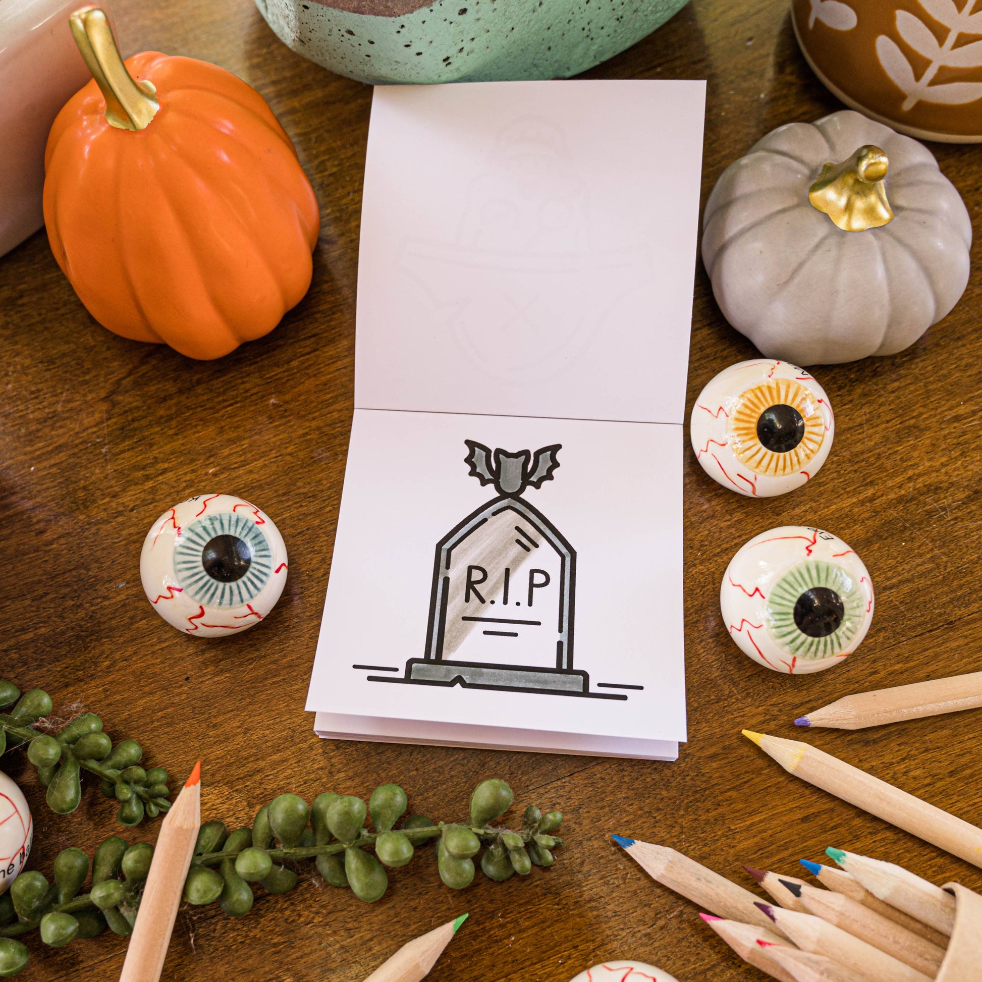 Enjoy a spooky and creative escape with our Halloween Mini Coloring Book, an ideal Halloween gift for both kids and adults. Perfect for a candy-free treat or as a charming addition to a Boo Basket, this compact coloring book offers a delightful way to unwind.