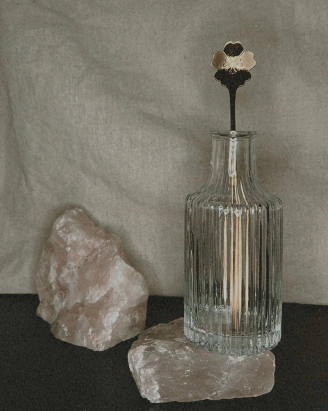 Elegant golden flower spoons stir in a little extra love. Perfect for stirring herbs in a French Press, or simply infusing your favorite beverages with a little touch of magic! Ideal for styling & serving herbs, salts, or seasonings! 4" spoon