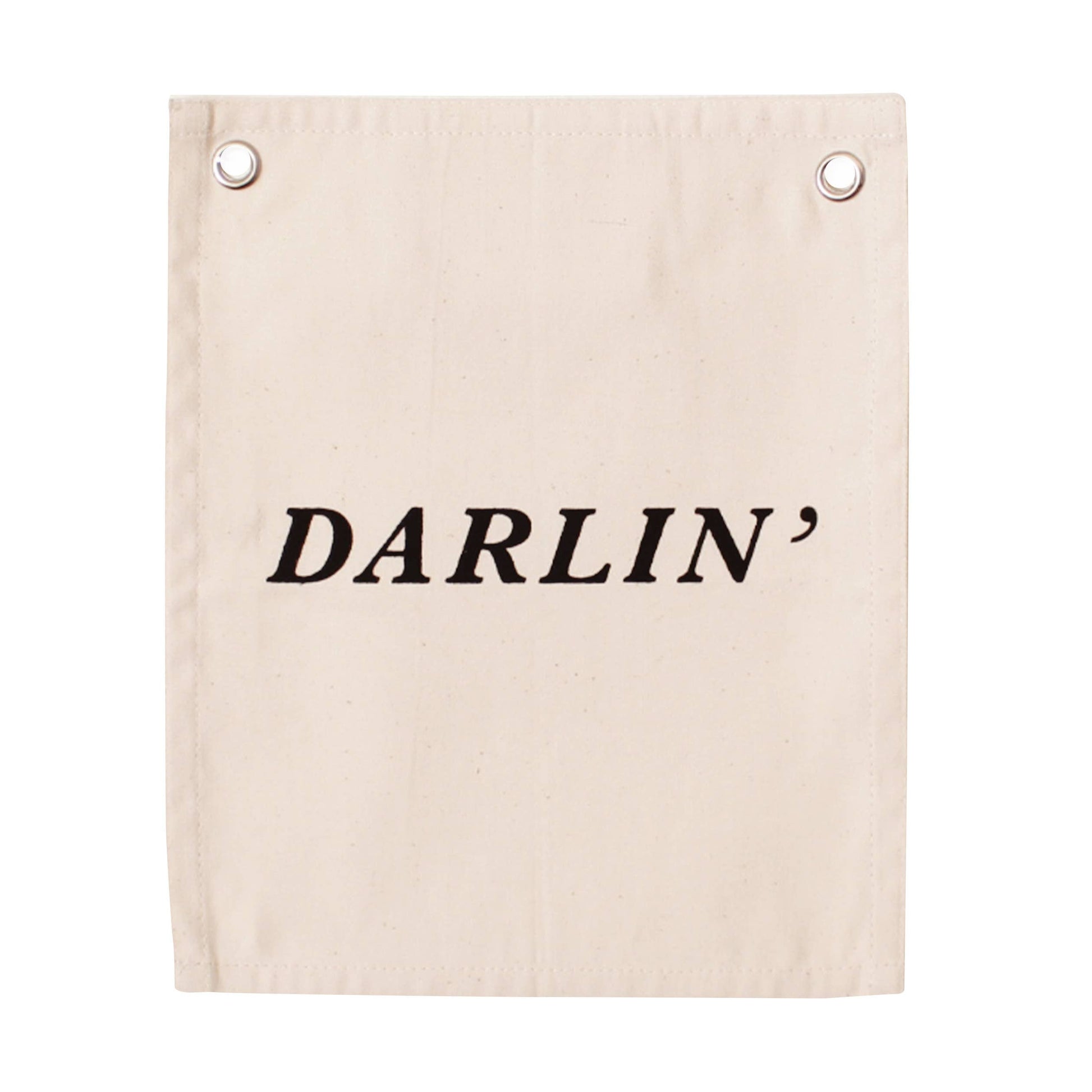 "Darlin'" Black screen print on canvas banner.