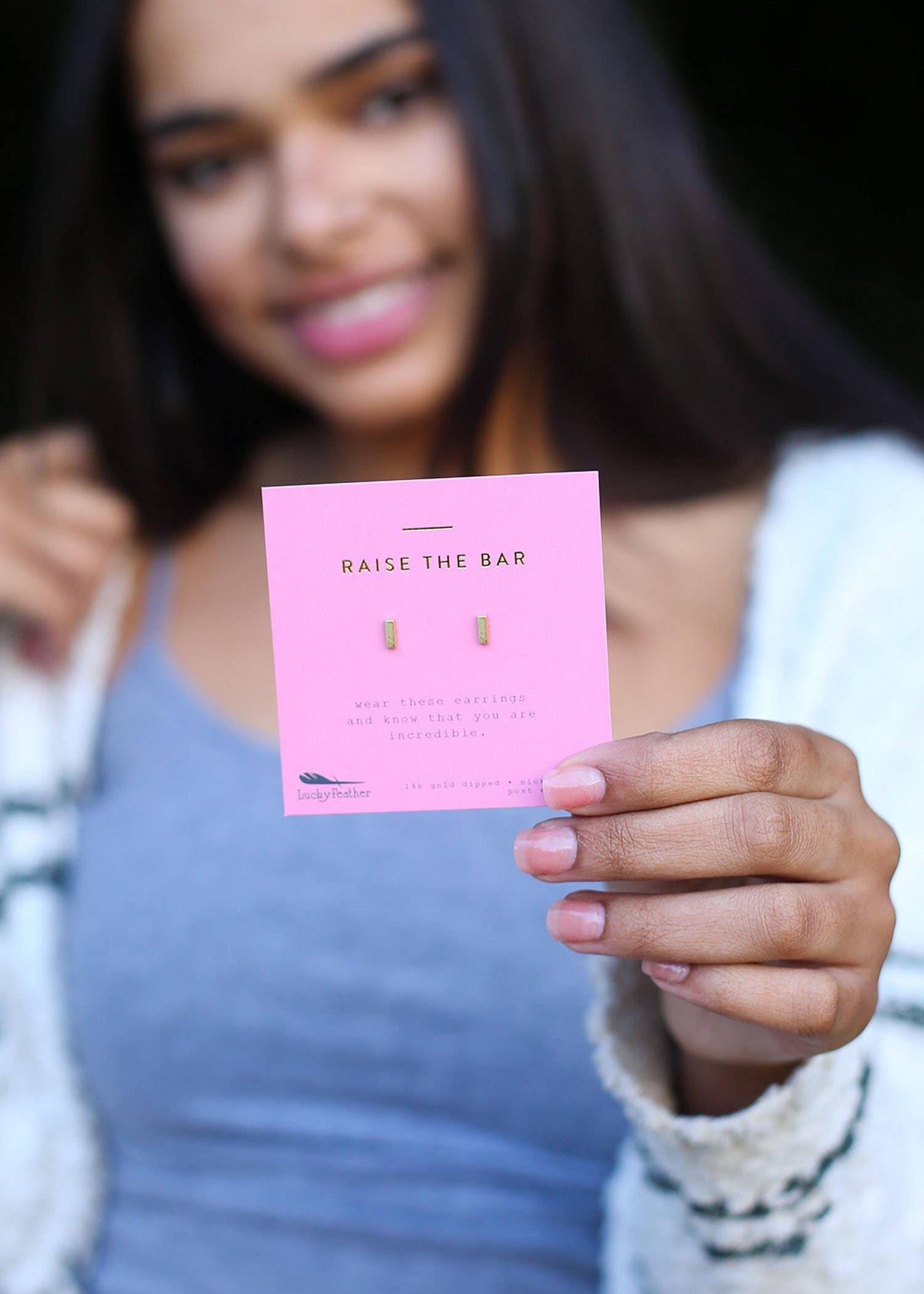 RAISE THE BAR with dainty gold-plated thin bar studs. Wear them and know that you are incredible.